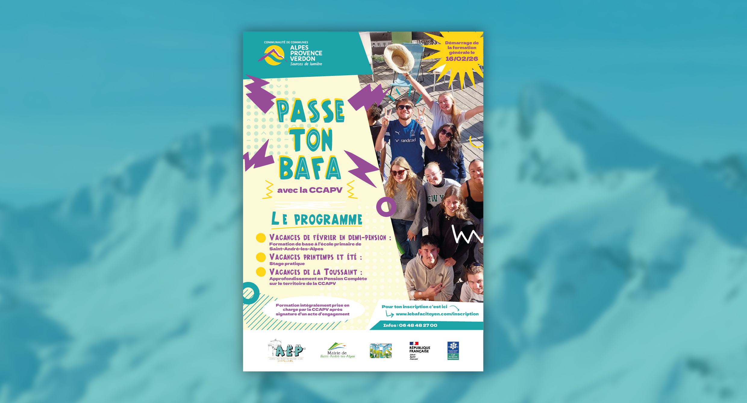Nous vous informons que, comme en 2024, la Communauté de Communes Alpes Provence Verdon (CCAPV) proposera en 2026 plusieurs sessions locales de formation au BAFA (Brevet d’Aptitude aux Fonctions d’Animateur).